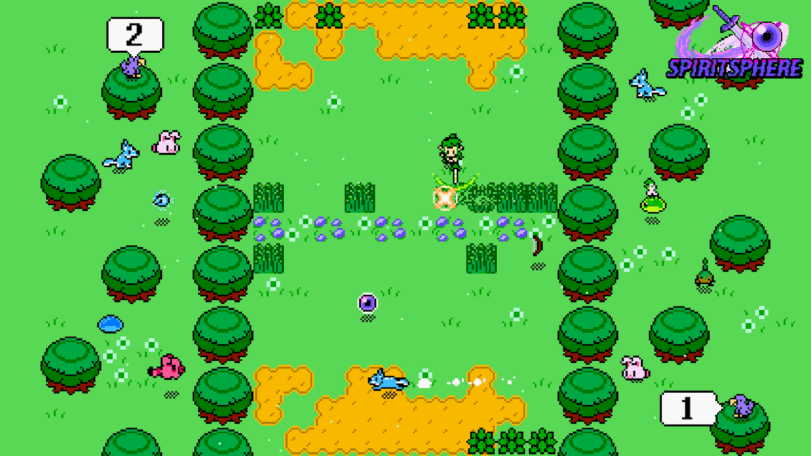 SpiritSphere is a local multiplayer game with graphics and concepts similar to those found in early games like Zelda and Windjammers. The unique concept of SpiritSphere captures the essence of classic games while delivering the gameplay of early air hockey games typically found at the arcade.