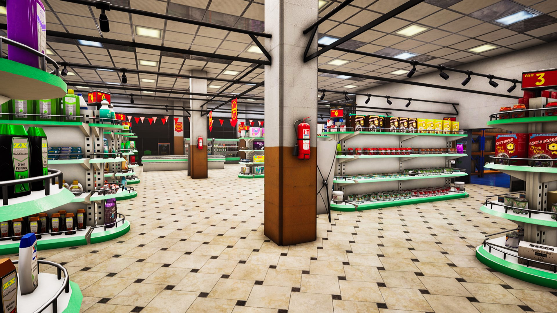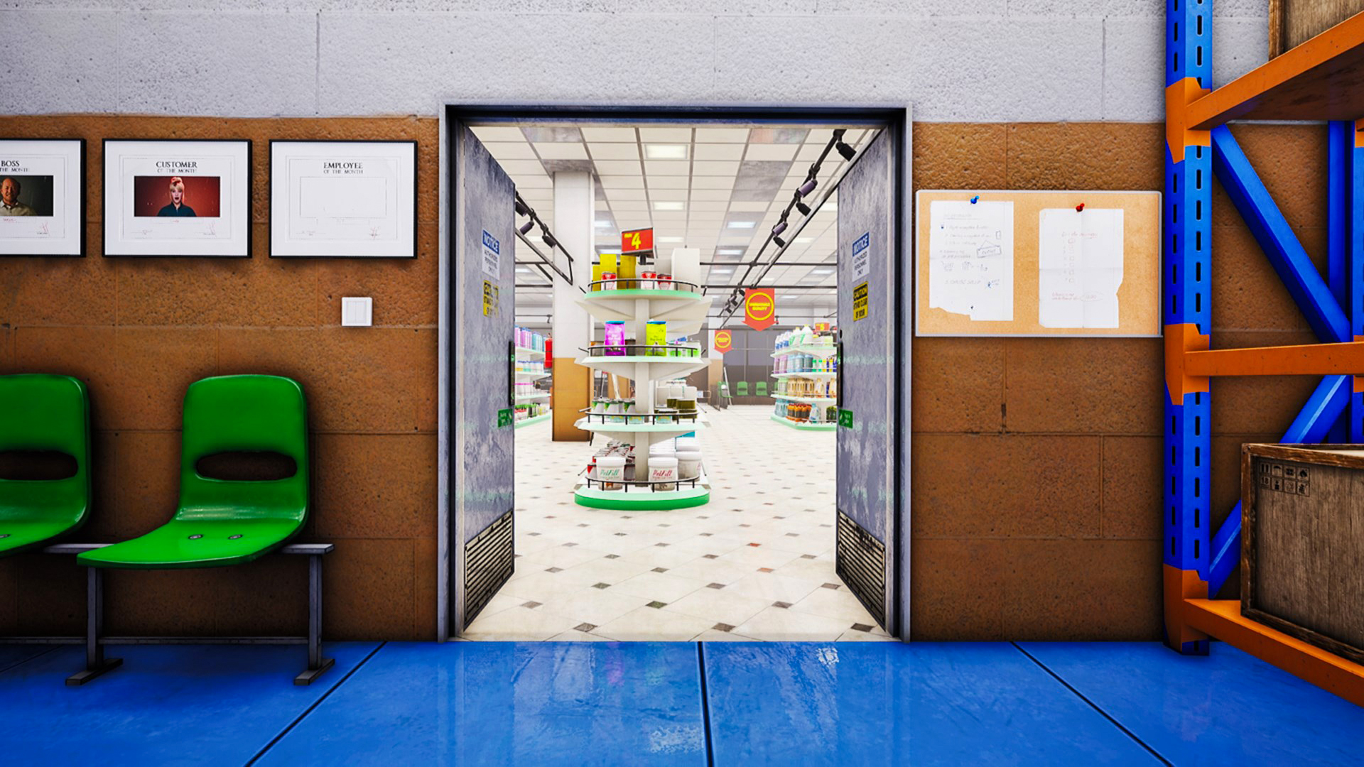 • Practical visuals: The art direction favors clarity over flash; muted palettes, readable signage, and deliberately cluttered shelves make it easy to scan environments at a glance. Small props; toppled boxes, half‑faced products, damp floor patches; are modeled and placed with intent so they function as clear gameplay signals as well as mood pieces. Additive touches (reflections in freezer glass, scuffed linoleum) deepen immersion without distracting from the checklist.