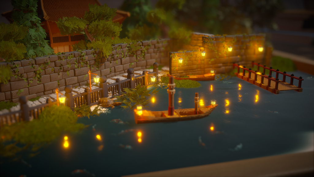 • Tune lighting per object by placing lanterns and lamps to paint scenes in warm glow or cool moonlight.